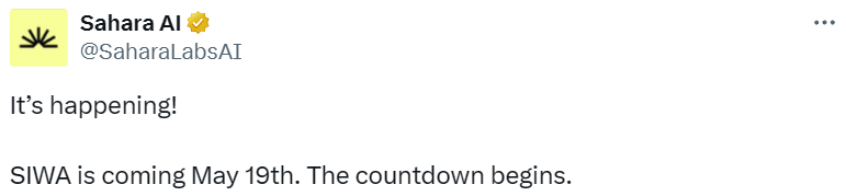 - Sahara AI 宣布 5 月 19 日推出 SIWA 公共测试网