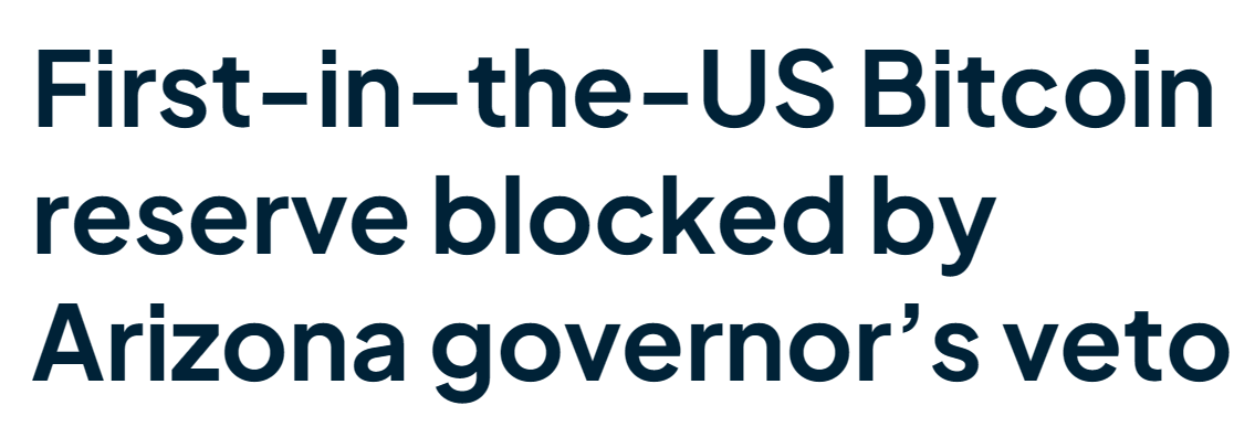- 亚利桑那州州长凯蒂霍布斯否决了数字资产战略储备法案