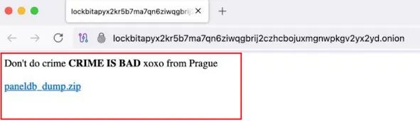 今日,慢雾 (SlowMist) 收到情报:LockBit 的 onion 站点被黑,攻击者不仅接管了其控制面板,还放出了一份包含数据库的打包文件,此举导致 LockBit 的数据库被泄露,包括比特币地址、私钥、聊天记录以及其关联公司等敏感信息。
