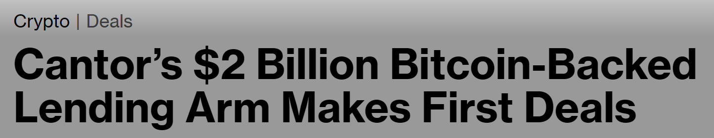 - Cantor 启动 20 亿美元比特币抵押信贷计划