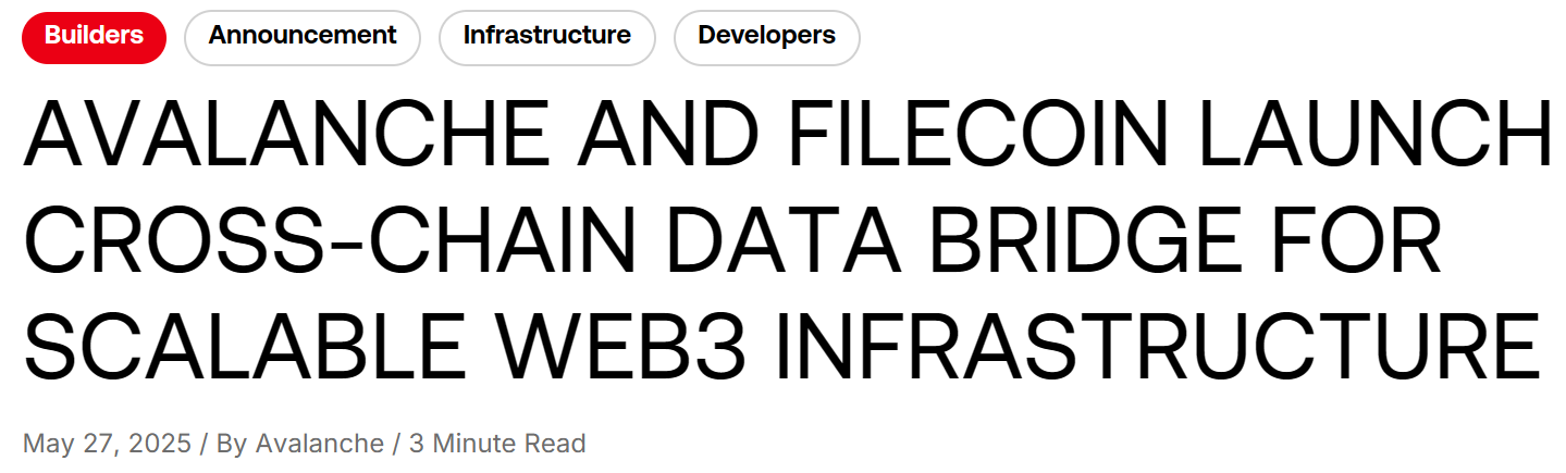 - Avalanche 与 Filecoin 推出跨链数据桥