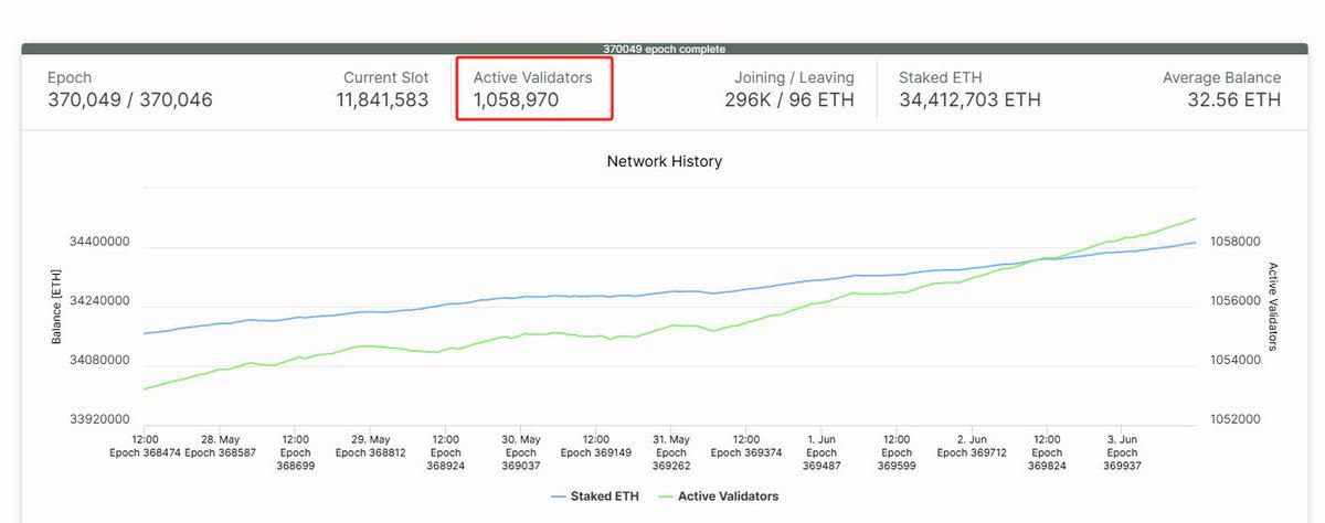 所以提高 Gas Limit 并不需要系统升级或代码修改,只要 PoS 节点在出块时持续 “发信号” 支持,便能推动网络逐步采纳这一变更。目前以太坊全网有超过 100 万个验证者,只要达到一定的支持比例,网络就会自动过渡到新的 Gas 上限,并确保所有节点的兼容性。