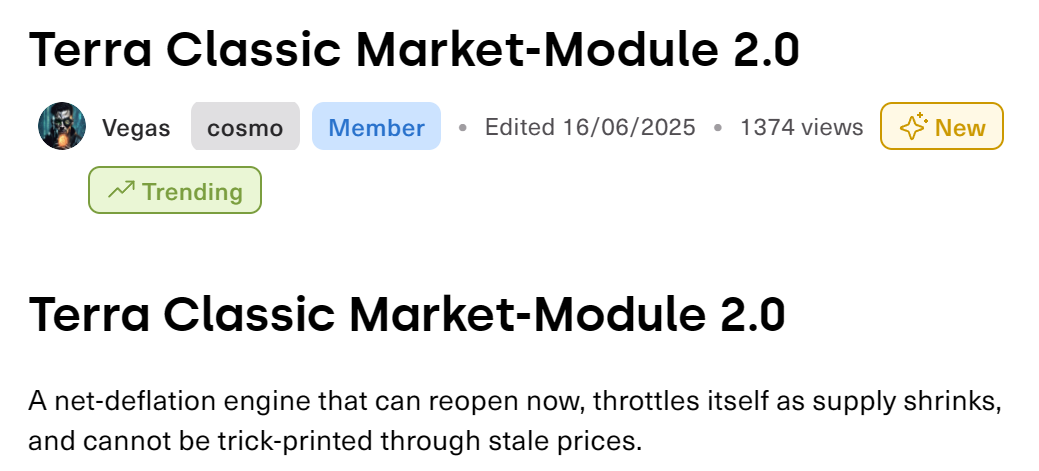 - Terra Classic 提交市场模块 2.0 提案草案