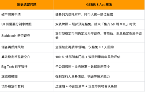 那么,《GENIUS 法案》将解决如下历史遗留问题。