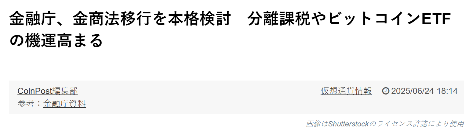 - 日本金融厅考虑将加密资产纳入《金融工具与交易法》
