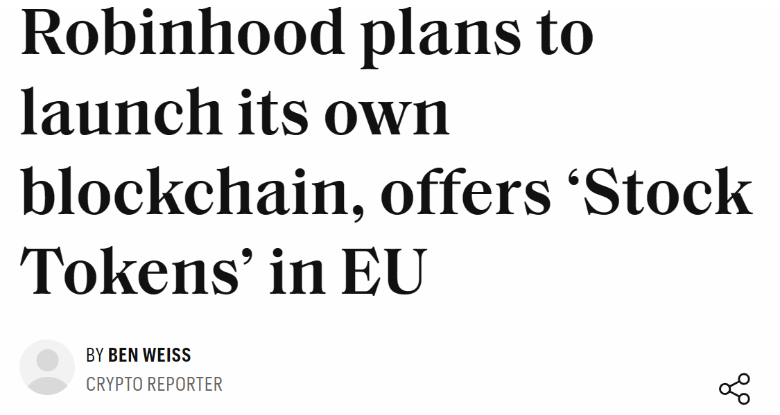 - Robinhood 计划推出 Layer 2 区块链并在欧盟提供 “股票代币” 业务