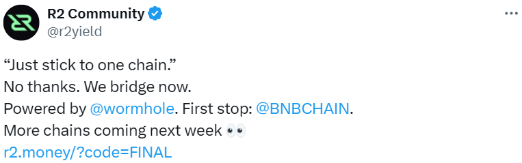 - R2 稳定币收益协议接入 Wormhole 跨链桥