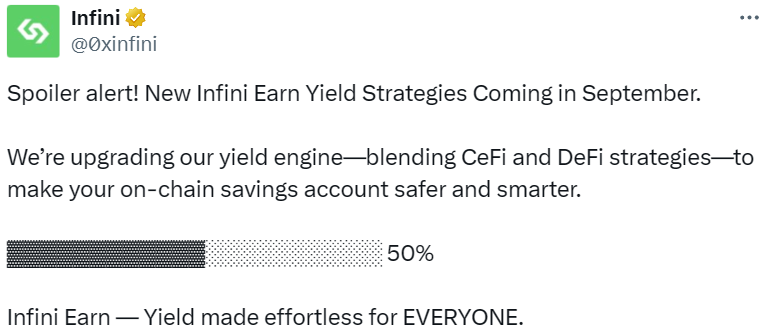 - Infini 将于 9 月推出新 Infini Earn Yield