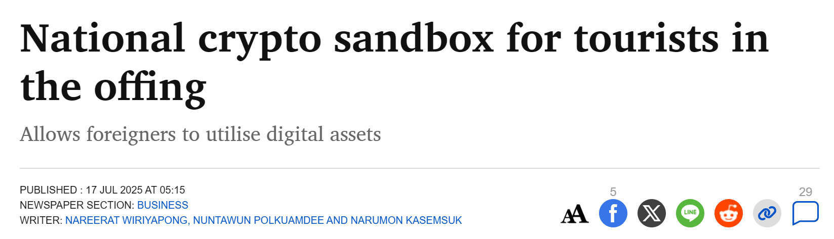 - 泰 SEC 与泰国银行合作推出沙盒计划