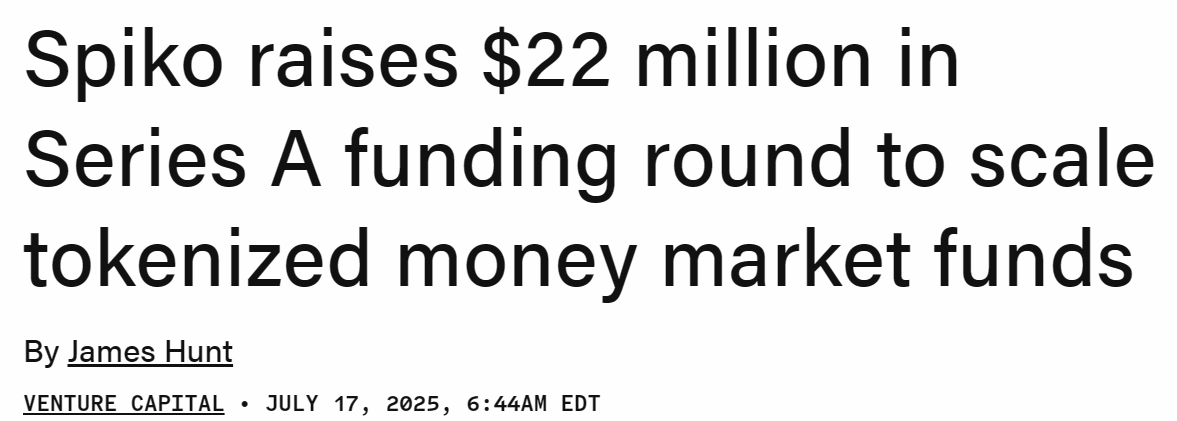 - 代币化货币市场基金平台 Spiko 完成 2200 万美元 A 轮融资,Index Ventures 领投