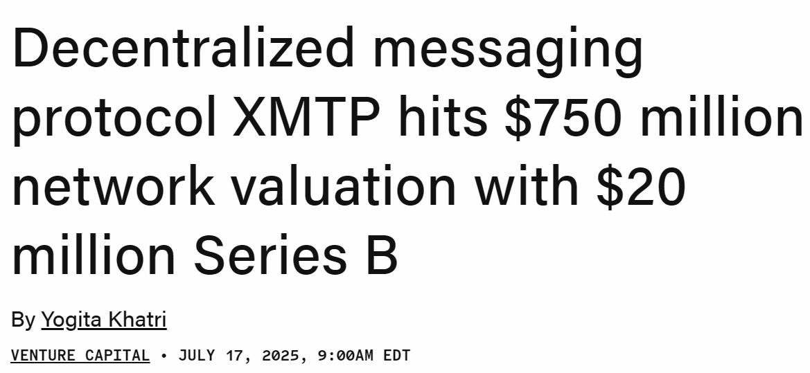 - 去中心化消息传递协议 XMTP 完成 2000 万美元 B 轮融资,a16z crypto 等领投