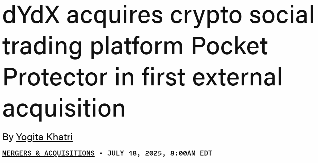 - dYdX 收购加密社交交易平台 Pocket Protector