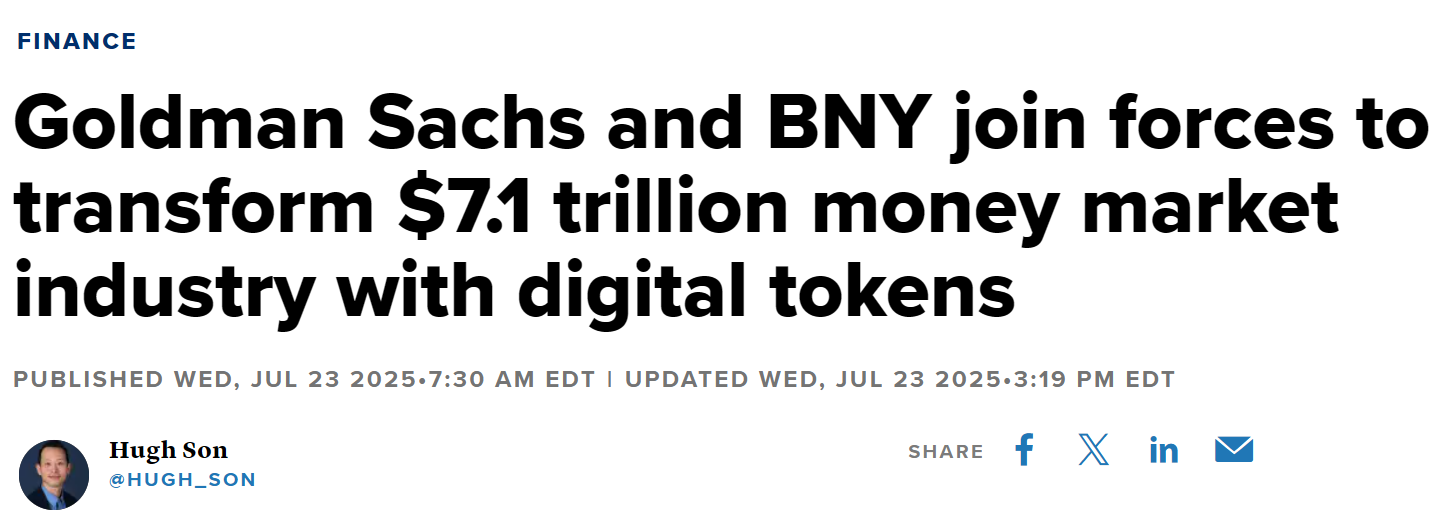 - 高盛与纽约梅隆银行联合推出货币基金代币化方案
