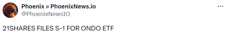 - 21Shares 提交 ONDO ETF 的 S-1 文件