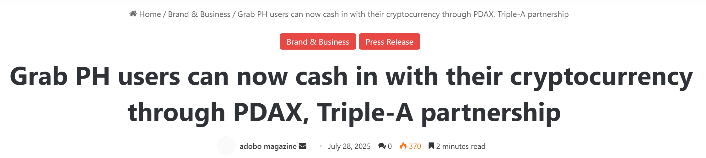 - 东南亚网约车巨头 Grab 现已在菲律宾接受比特币等加密货币支付