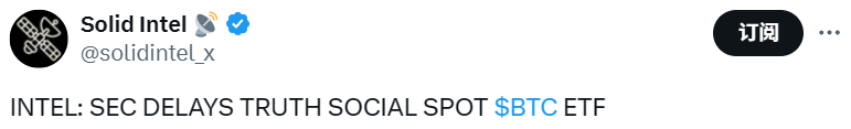 - 美 SEC 延迟 Truth Social 提交的现货比特币 ETF 申请