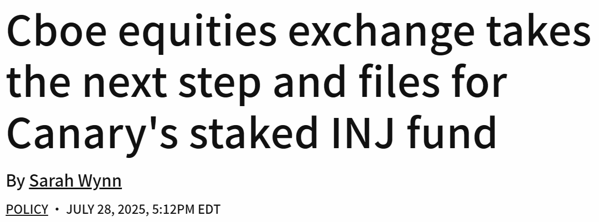 - Cboe 提交 Canaray 质押型 INJ ETF 及 Invesco Galaxy Solana ETF 申请文件