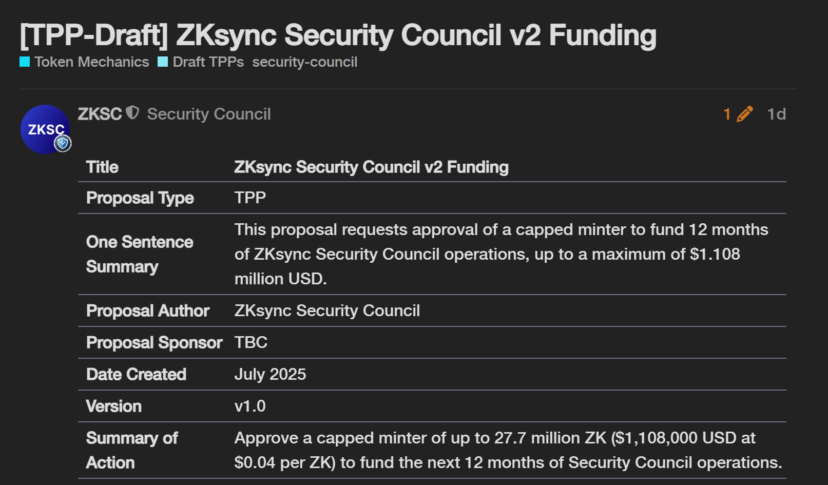 - ZK Nation 社区发布「ZKsync 安全委员会 v2 资金筹集」提案