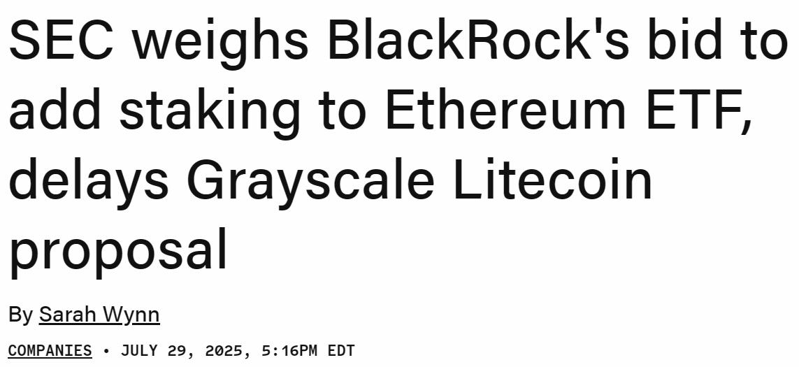 - 美 SEC 确认收到贝莱德以太坊现货 ETF 进行质押的申请