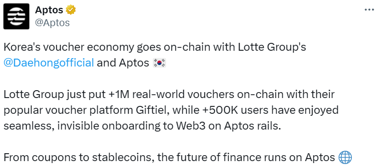 - 乐天集团旗下大弘传播基于 Aptos 构建区块链「资金流动」生态系统