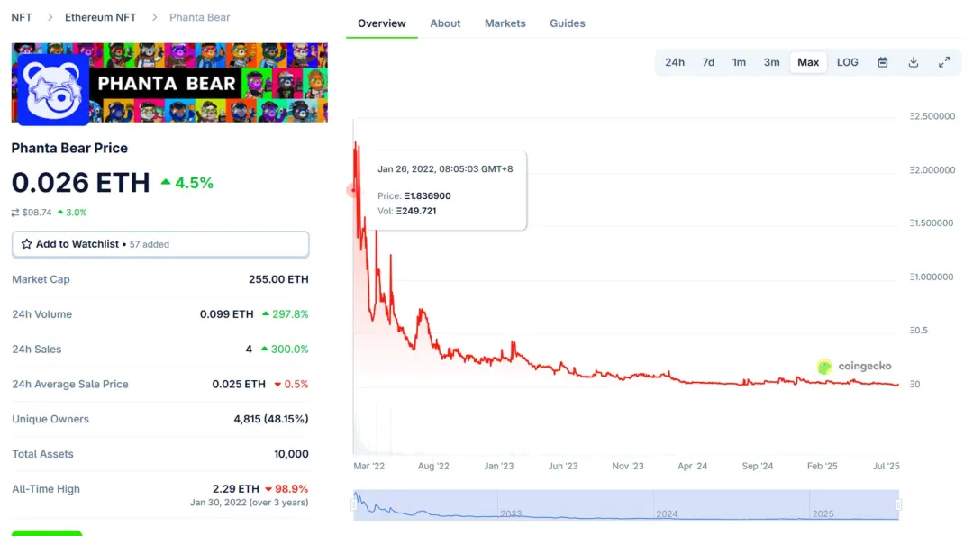 陈冠希、余文乐、伊能静相继推出 NFT 项目,但最终都在熊市浪潮中溃败。Theirsverse 从 0.219 ETH 跌至 0.02 ETH,跌幅超 96%,伊能静因此背负 “韭菜女王” 标签。