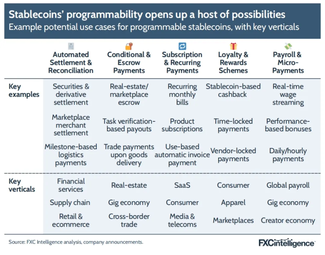 未来最值得关注的领域之一,是稳定币的 “可编程性”。由于可以在转账时附加额外信息,企业不仅能 “汇钱”,还能为这笔钱设定触发条件、自动执行后续动作。