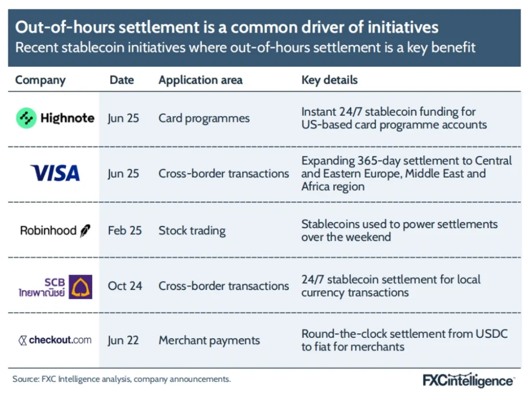 在这种模式下,客户往往既不知道、也不关心自己的款项是否通过稳定币流转;外界也难以一眼看出哪些机构已在哪些通道上采用稳定币。当下,很可能已有比公开披露更多的玩家在暗中使用该技术,还有更多在观望试水,但我们无法准确量化其行业占比。