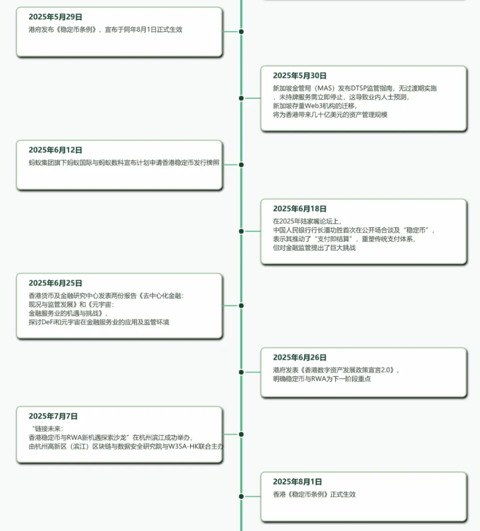 稳定币监管是香港打造全球虚拟资产中心的关键一步,由香港金融管理局(HKMA)主导。相关条例草案已于 2025 年 5 月 21 日通过,并将于同年 8 月 1 日正式生效。