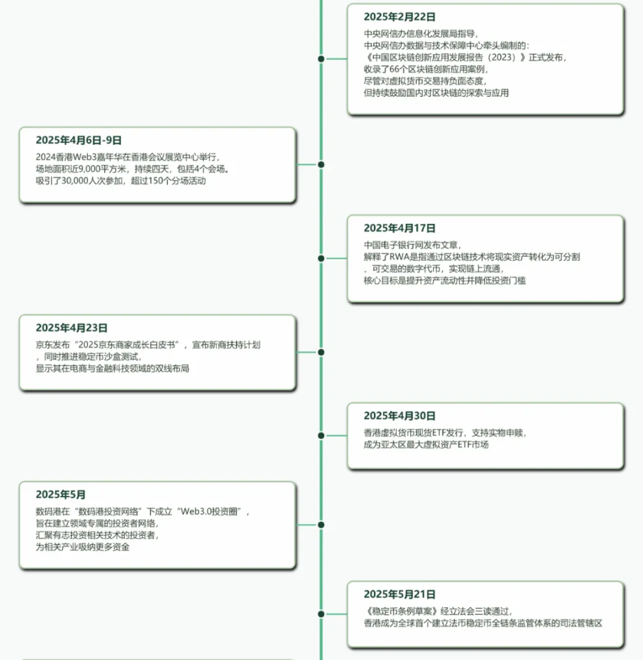 2017 年,中国内地对虚拟资产市场采取了全面叫停的政策,按下了数字资产发展的 “暂停键”。当年 9 月,中国七部委联合发布《关于防范代币发行融资风险的公告》,全面叫停了首次代币发行(ICO)活动,并关闭了境内所有虚拟货币交易平台,旨在有效出清市场风险。此后,内地进一步加强了对 “变相交易” 和 “场外交易” 的打击力度,并于 2021 年 9 月明确将虚拟货币相关的所有业务(包括交易、兑付、中介、广告等)定性为非法金融活动。这一系列高压监管措施,有效维护了金融体系的稳定性和风险可控性。