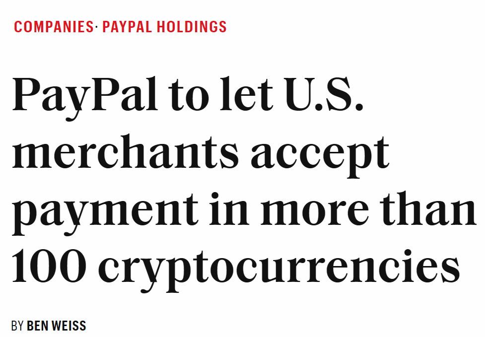 - PayPal 允许美国商户接受超过 100 种加密货币支付