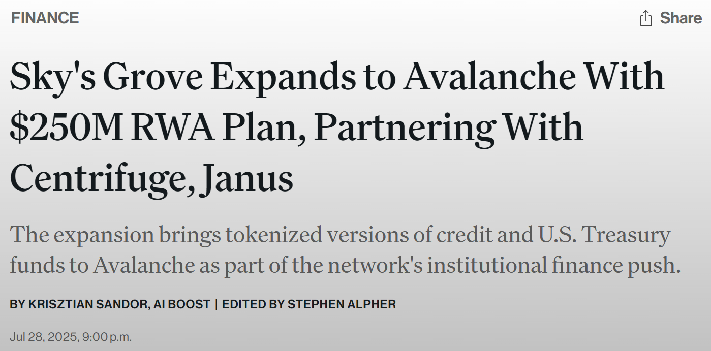 - 信贷协议 Grove 拓展至 Avalanche 网络