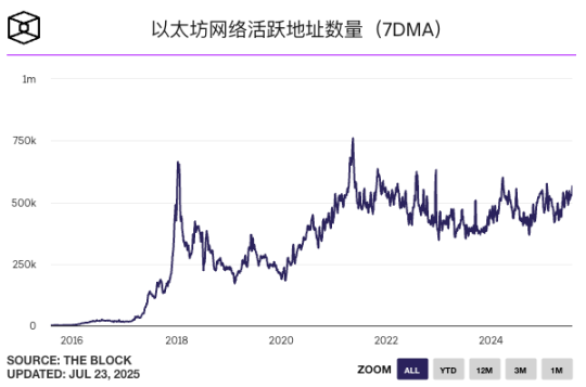 链上数据印证了这种缺失。2025 年 7 月,以太坊网络每日销毁的 ETH 数量一度不足 50 枚,连续创历史新低,相比 2021 年狂热时期日均近千枚的销毁量几乎不可同日而语。