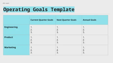运营计划是一个不断迭代的过程,因此不必过度纠结于初稿。有很多最佳实践可供参考,各种框架、还有昂贵的咨询顾问可以聘请。但核心工作是清晰地阐明公司里谁在做什么,你可以自己把这些写下来,之后再完善也不迟。目前,只需确保一段时间内的运营目标清晰且有条理即可。