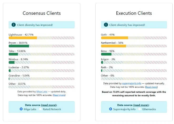 以太坊目前有五个主要的软件客户端可用于运行网络,这意味着即便某个客户端出现问题,网络也不会像 Solana 那样直接停摆。
