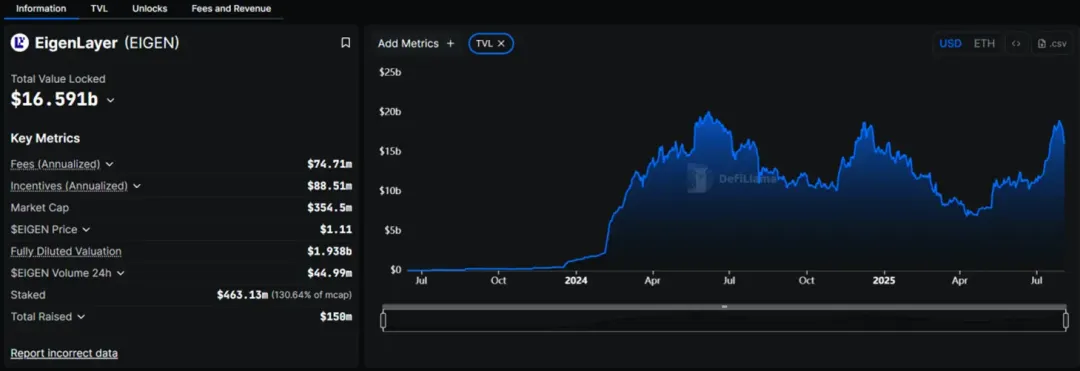 就像银行存款不仅能赚利息,还能同时"打工"赚外快。EigenLayer 165.91 亿美元的总锁仓价值印证了这一模式的吸引力,而 The Ether Machine 已成为该生态最大的机构参与者之一。