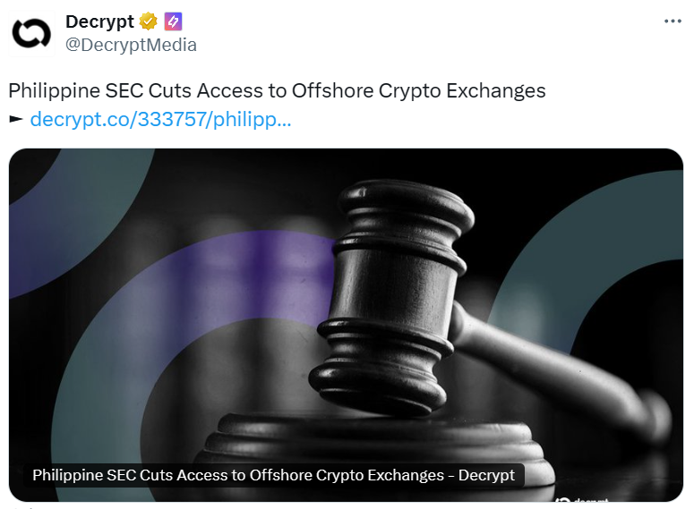 - 菲律宾监管机构限制访问未注册加密货币交易所