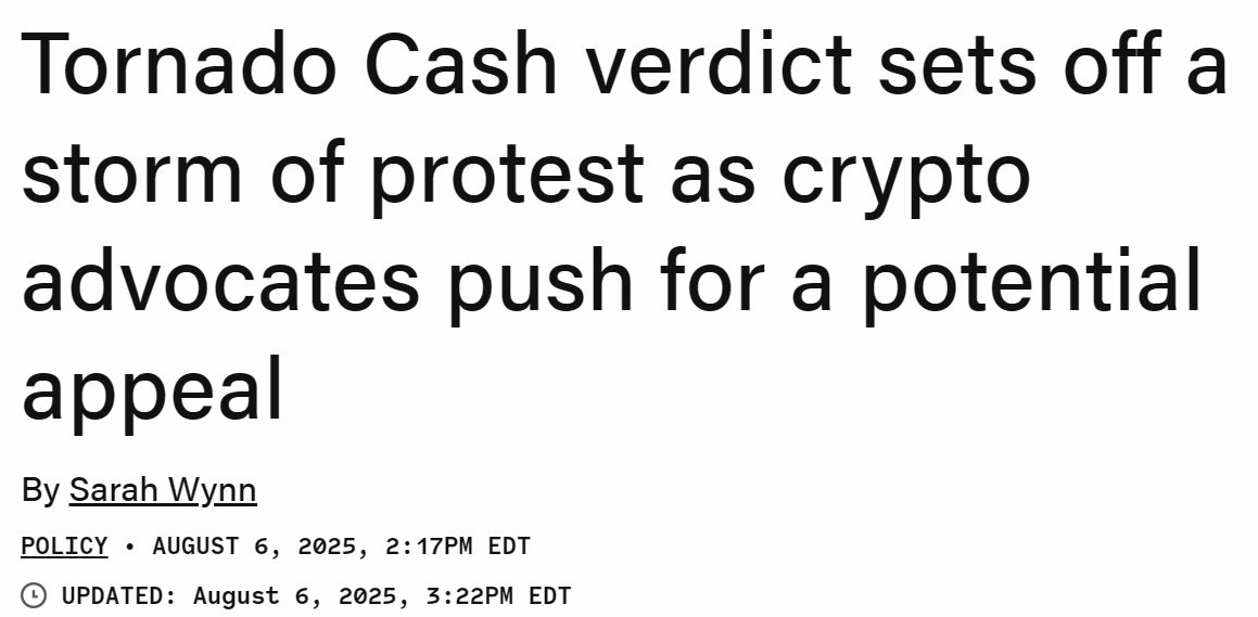 - Tornado Cash 联创被判合谋经营无牌汇款业务罪名成立