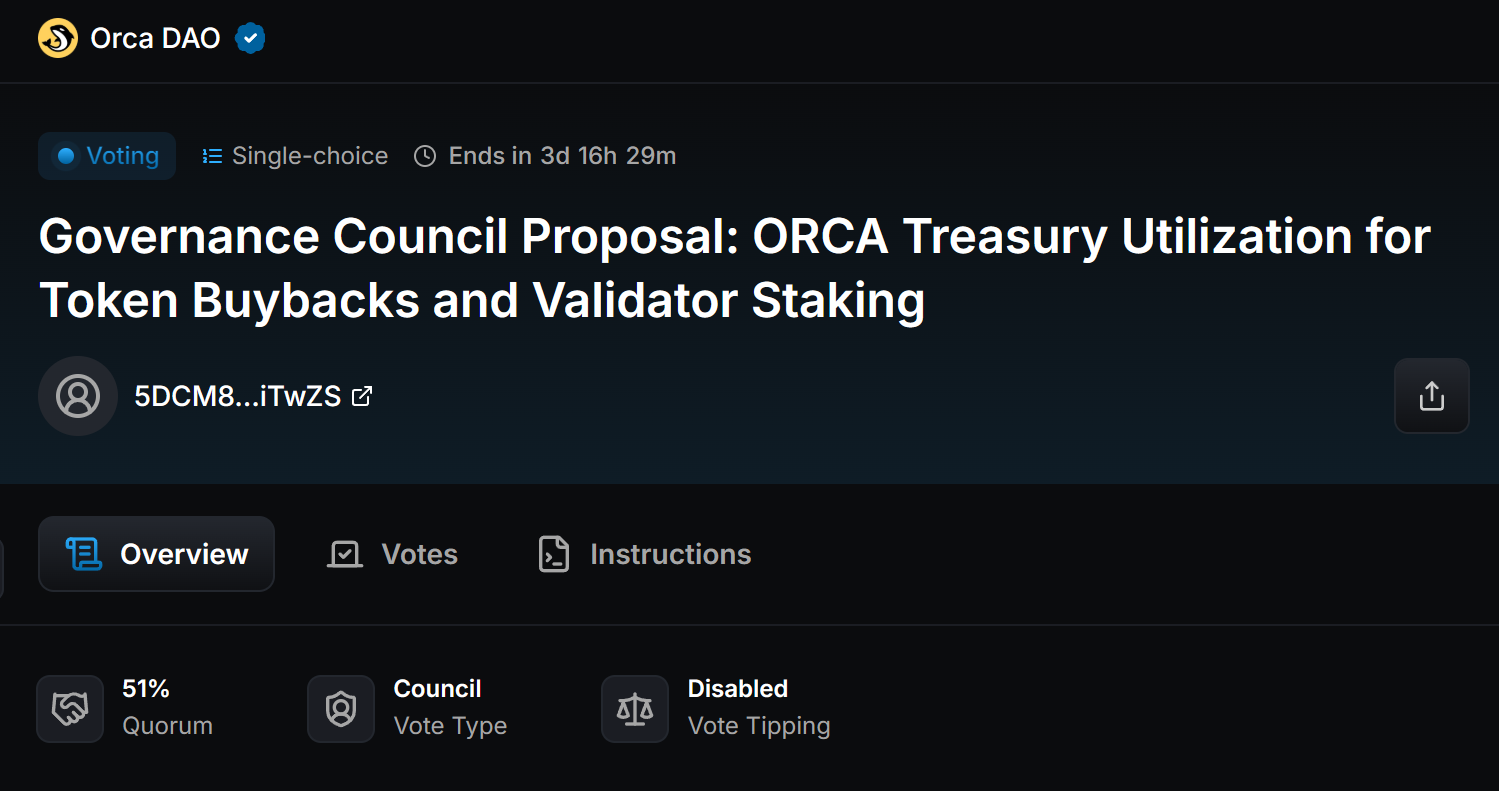 - Orca 理事会发布“ORCA 财库用于代币回购和验证者质押” 治理提案
