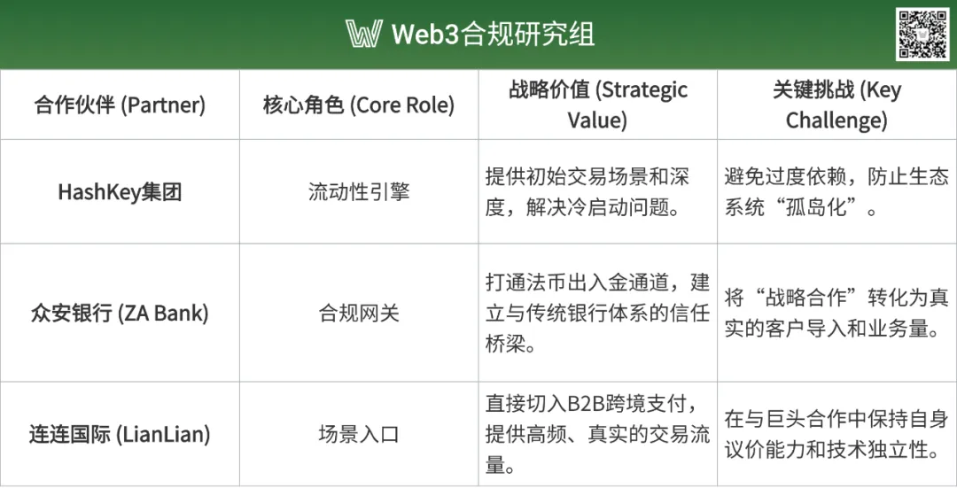 众安国际的 VASP 牌照和众安银行的虚拟银行牌照形成合规闭环,满足香港金管局对稳定币发行人(储备资产透明度、定期审计)和虚拟资产服务的严格要求。圆币科技依托众安银行的虚拟银行牌照和支付系统,提供技术与合规支持,银行的跨境支付和零售结算业务可以为 HKDR 提供应用场景。