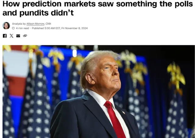 美国传统民调机构怎么也想不到,取代自己的不是先进的人工智能,居然是一个 Web3 预测平台。2024 年的大选中,一众民调机构的调查数据都显示,哈里斯相比于特朗普在支持率上占据明显优势。然而,Polymarket 平台的预测结果却和民调机构大相径庭,特朗普的胜选概率一直遥遥领先于哈里斯。最终,随着特朗普以碾压性优势横扫哈里斯赢得 2024 年的总统大选,Polymarket 也因此一战成名,开始走进大众视野当中。