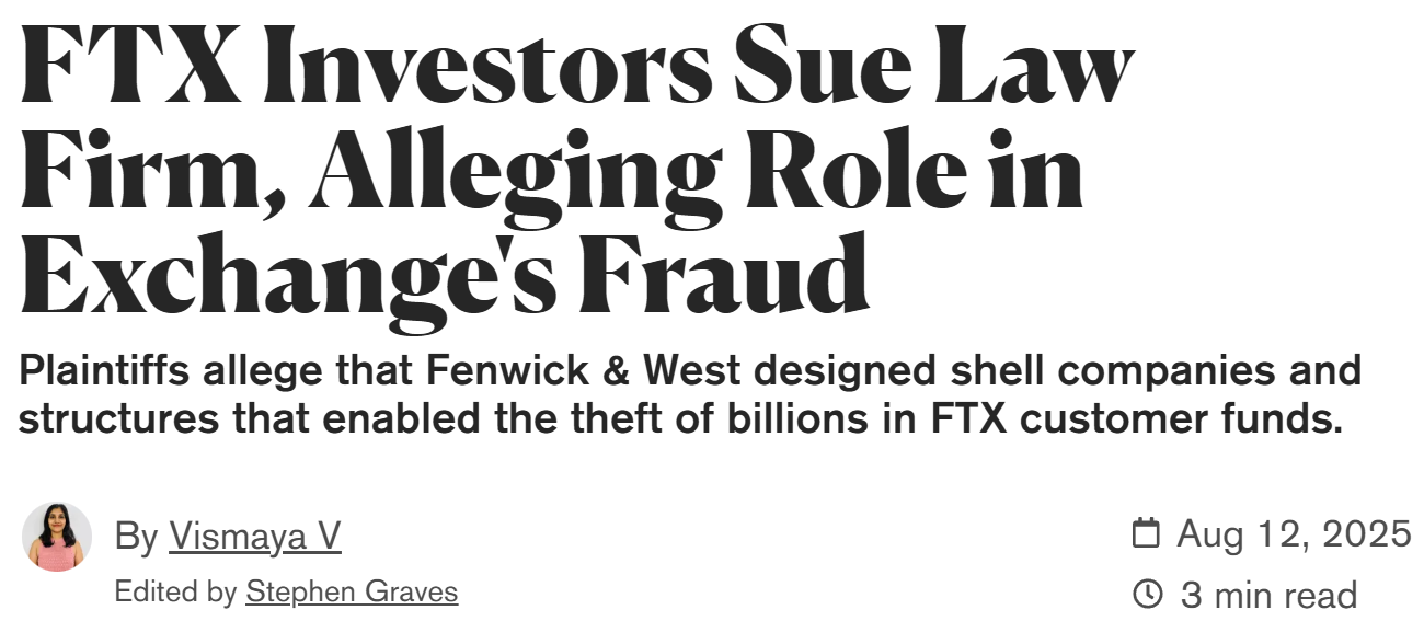 - FTX 投资者起诉律所 Fenwick & West