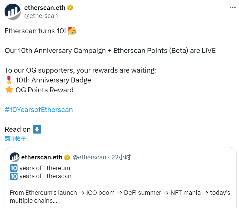 - Etherscan 推出十周年纪念及 Etherscan 积分活动