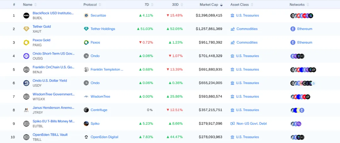 首先自然是 Ondo Finance,作为 RWA 代币化赛道的龙头项目,其最初定位为链上债券与国债的代币化平台,且截止发文时,Ondo Finance 依托美国国债的两大旗舰产品 USDY 和 OUSG,依旧在 RWA 代币化赛道中牢牢占据体量前十的核心位置。
