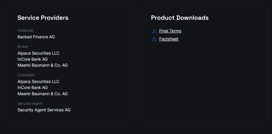 其中团队基于瑞士法律框架开展业务,严格遵循当地金融监管要求,在链上发行完全锚定的代币化证券,并与 Alpaca Securities LLC 等合作伙伴建立了股票购入与托管体系,确保链上代币与链下资产之间的 1:1 映射关系。