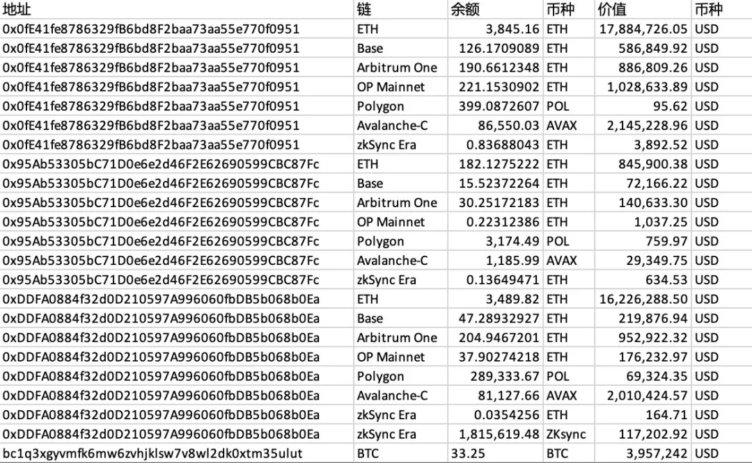 涉及 Bitcoin、 以太坊 (ETH)、Avalanche (AVAX)、Arbitrum (ARB)、Base (BASE)、Optimism (OP) 和 Polygon (POL) 等链。
