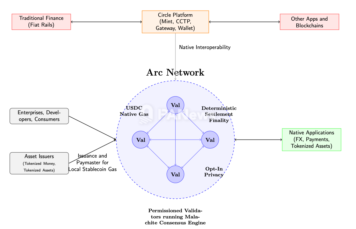 Arc 定位为全球金融创新的操作系统,支持跨境支付、链上信贷、资本市场结算等核心应用,同时为机器、系统和 AI 代理提供安全、自动化的链上交易能力,支持复杂金融场景,如实时资本管理、供应链金融和自动化国库操作。
