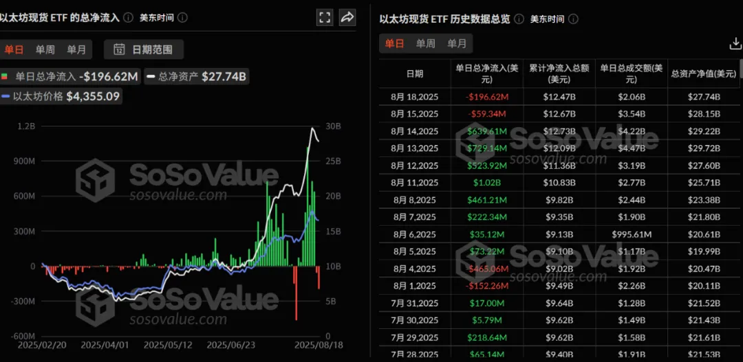 2024 年 5 月,美国 SEC 批准了 8 只以太坊现货 ETF 的 19b-4 申请,并于 7 月 23 日正式上市交易,标志着 ETH 与华尔街的合规通道正式打通,至今以太坊现货 ETF 已运行超过一年。
