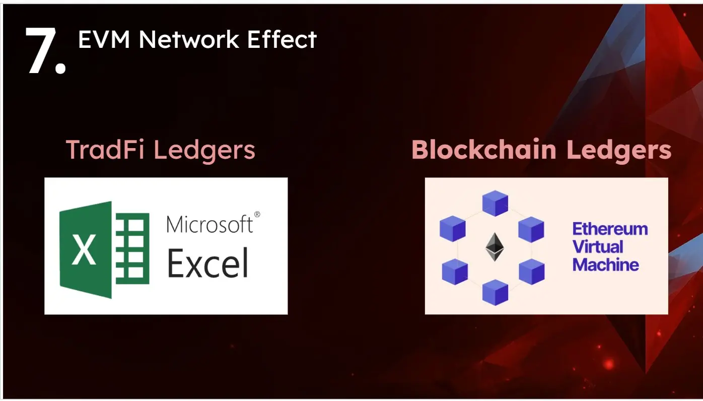 正如微软 Excel 支撑着传统金融一样,EVM 是华尔街为保持市场份额、不被以太坊上的创新所颠覆而需要充实人才的新一代账本软件。