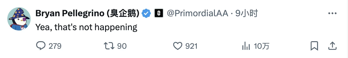 截至发文,有别于 LayerZero 提出收购后双方频频互动的 “和谐景象”,在 Wormhole 提出有意收购后,Stargate 官方推特没有发布任何一条相关动态,而 LayerZero 方面也仅有联合创始人 Bryan 疑似回应了一句:“这不可能发生。”