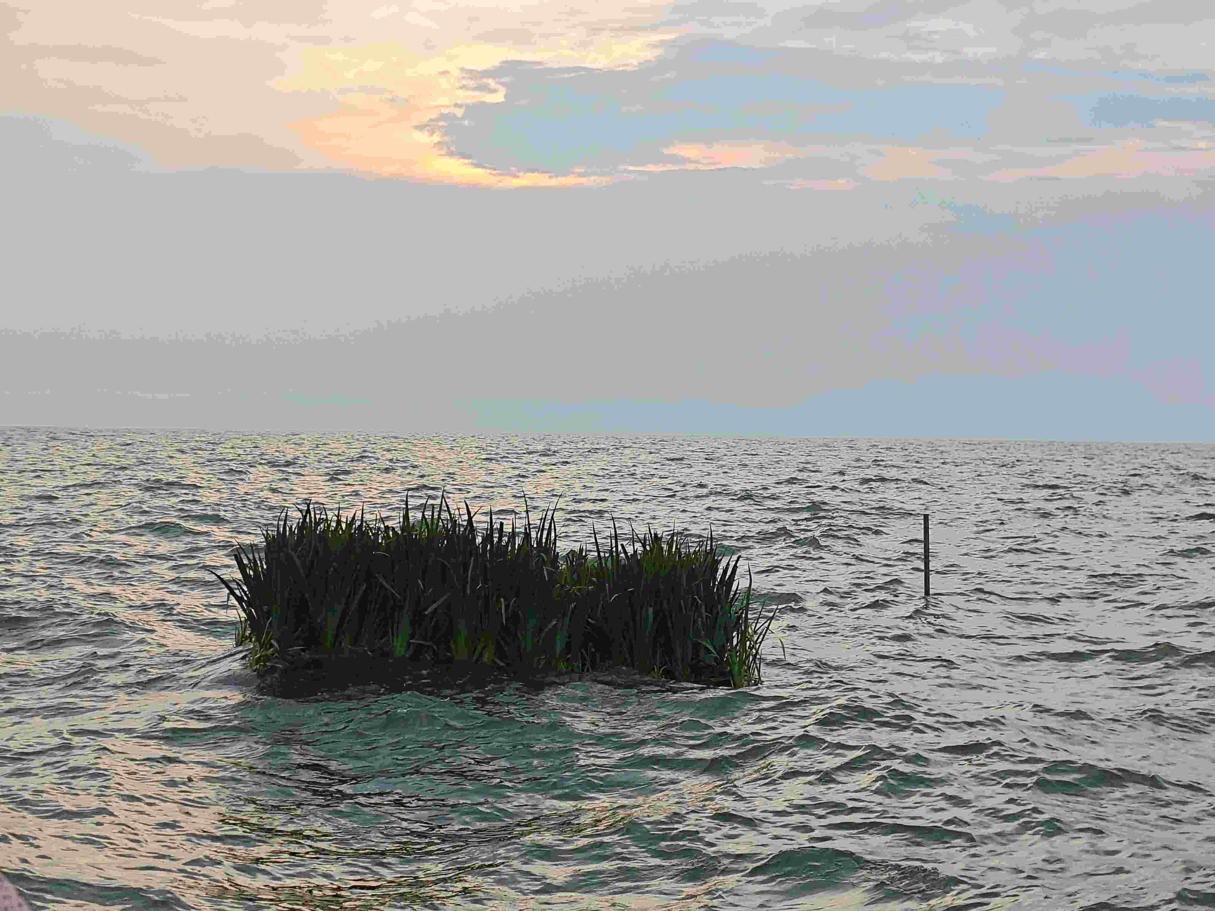 在昆明的滇池里会有若干随浪浮动的草方块,与广阔的湖面形成对比。我特意查了一下,这些草方块是用来改善水质的措施,降低水体富营养化程度。